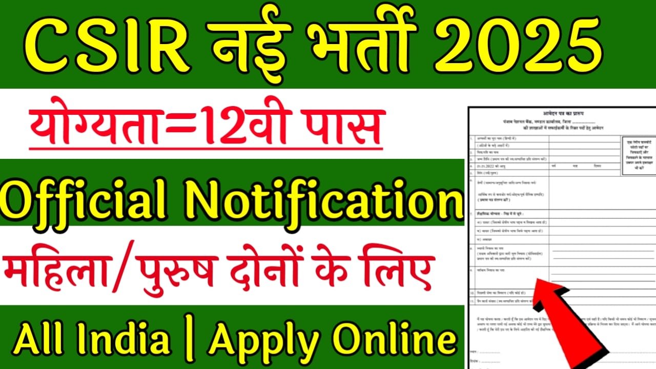CSIR Recruitment 2025: 2025 CSIR Recruitment की तरफ से बंपर भर्ती निकल कर आ गई है भारत के सभी लोग इसके लिए आवेदन कर सकते हैं All India Male/Female Can Apply Online  कैसे आवेदन करना है इसके साथ आपको इसमें वेतन Salary , Age Limit, Qualifications All Information Are Given Here अगर आप नौकरी करना चाहते हैं तो आपके लिए बहुत ही बड़ा मौका निकाल कर आ चुका है 2025 में सरकारी नौकरी करना चाहने वालों के लिए बहुत ही बड़ा मौका है भारत के सभी राज्यों के लिए भर्ती निकल कर आ गई है आपके राज्य में ही आपकी पोस्टिंग हो सकती है