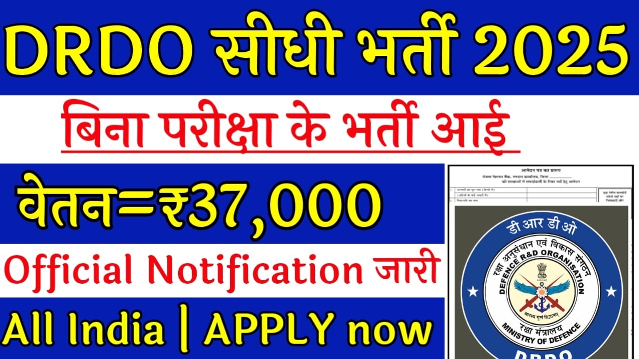 DRDO Recruitment 2025: 2025 DRDO की तरफ से बंपर भर्ती निकल कर आ गई है भारत के सभी लोग इसके लिए आवेदन कर सकते हैं ALL INDIA MALE / FEMALE के लिए बहुत ही बड़ा मौका निकाल कर आ गया है कैसे आवेदन करना है इसके साथ आपको इसमें वेतन कितना मिलेगा और इसमें आपकी आयु सीमा क्या है है तो इसका फॉर्म जरूर भरे इच्छुक उम्मीदवार पूरा नोटिफिकेशन फॉर्म भरने से पहले पढ़ ले तो कैसे फॉर्म भरना उसकी पूरी जानकारी आपको यहां पर मिलने वाली है आपको बता दे की DRDO में अगर आप नौकरी करना चाहते हैं तो आपके लिए बहुत ही बड़ा मौका निकाल कर आ चुका है 2025 में सरकारी नौकरी करना चाहने वालों के लिए बहुत ही बड़ा मौका है के लिए भर्ती निकल कर आ गई है आपके राज्य में ही आपकी पोस्टिंग हो सकती है