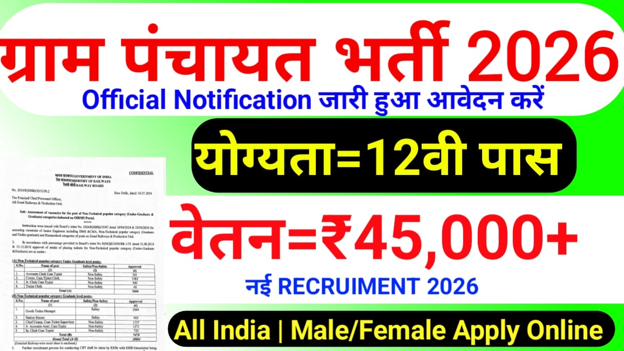 Gram Panchayat Bharti 2026 ग्रामीण क्षेत्र में सरकारी नौकरी की तलाश कर रहे युवाओं के लिए एक शानदार अवसर है। इस भर्ती का मुख्य उद्देश्य गांव स्तर पर सरकारी योजनाओं की निगरानी, रिकॉर्ड प्रबंधन और विकास कार्यों को तेज करना है।