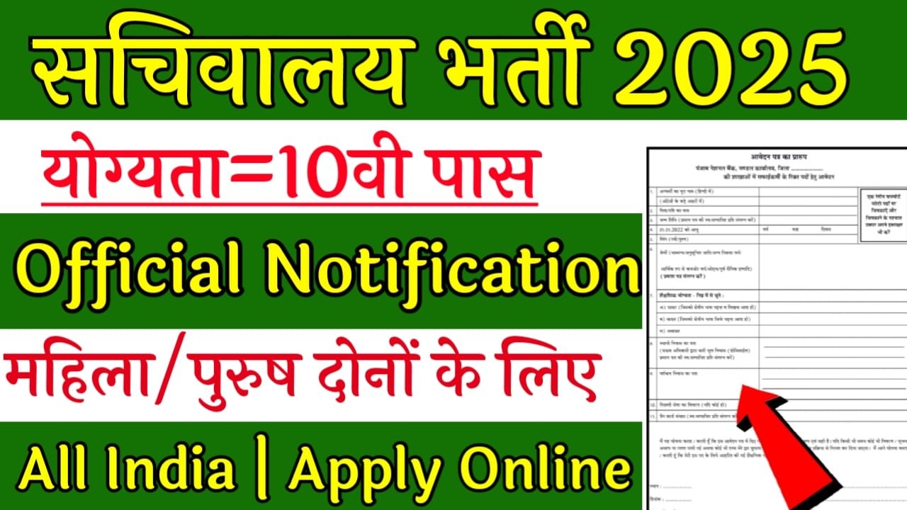 Sachivalay Recruitment 2025: 2025 Sachivalay Recruitment की तरफ से बंपर भर्ती निकल कर आ गई है भारत के सभी लोग इसके लिए आवेदन कर सकते हैं All India Male/Female Can Apply Online  कैसे आवेदन करना है इसके साथ आपको इसमें वेतन Salary , Age Limit, Qualifications All Information Are Given Here अगर आप नौकरी करना चाहते हैं तो आपके लिए बहुत ही बड़ा मौका निकाल कर आ चुका है 2025 में सरकारी नौकरी करना चाहने वालों के लिए बहुत ही बड़ा मौका है भारत के सभी राज्यों के लिए भर्ती निकल कर आ गई है आपके राज्य में ही आपकी पोस्टिंग हो सकती है